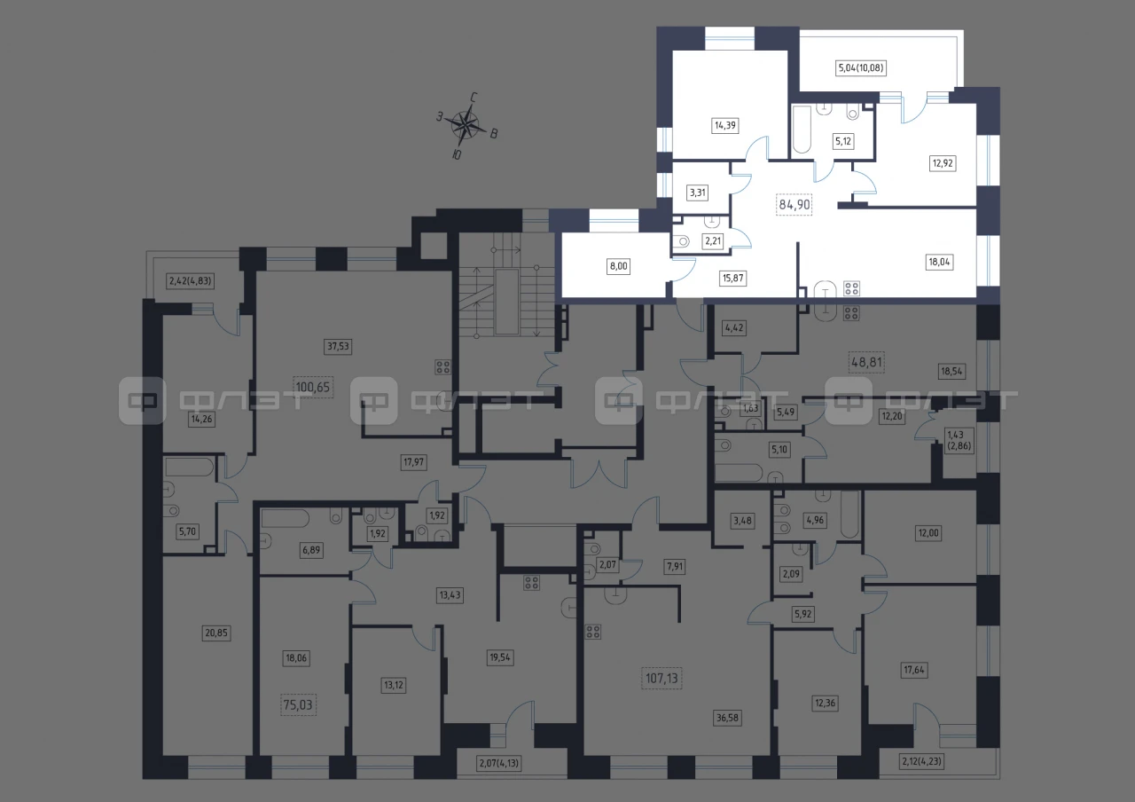 - 84.9/35.31/18.04 м²